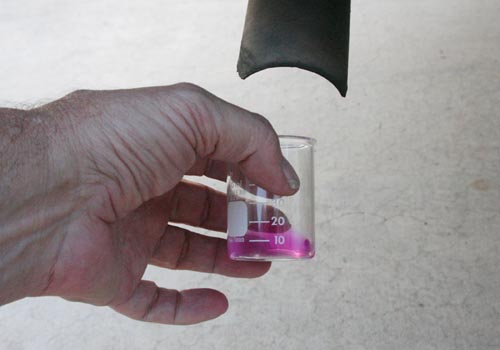 Take your beaker out to your vehicle. Start up the vehicle and hold the 50 mL beaker somewhat close to the exhaust pipe (don't burn any fingers). If our theory is right, carbon dioxide is a by-product of gasoline and will produce carbonic acid in the water in the beaker. That will begin to neutralize the calcium hydroxide (lime water) or the baking soda if you had to add that. |