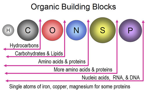 | 19. To the right is a summary of what elements are needed to make each category of organic compounds. There is just one error. RNA and DNA only need five of the six elements. Which element is not needed? | ![]() |